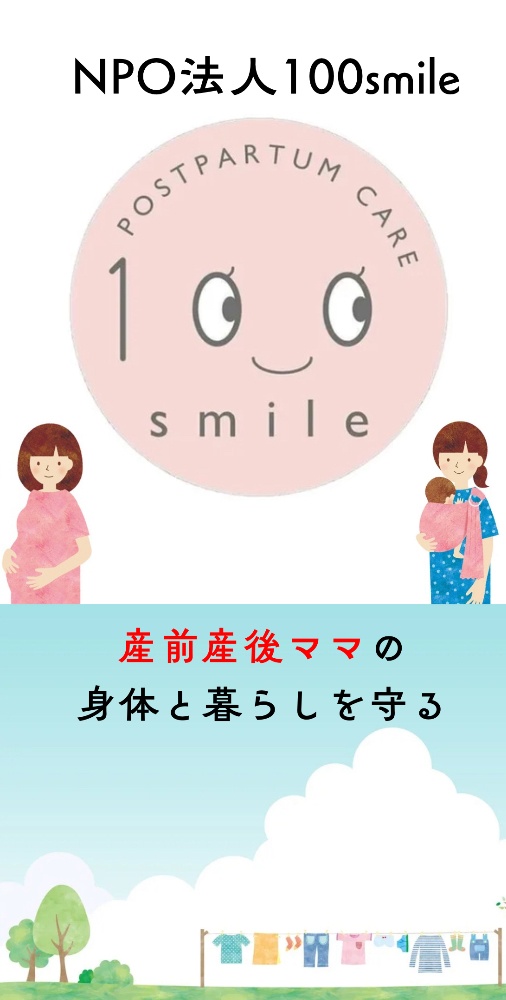 NPO法⼈ハンドレッドスマイルは、産前産後ママの⾝体と暮らしを守る仕組みを作り、地域社会から産前産後ケアの普及を⽬指します。